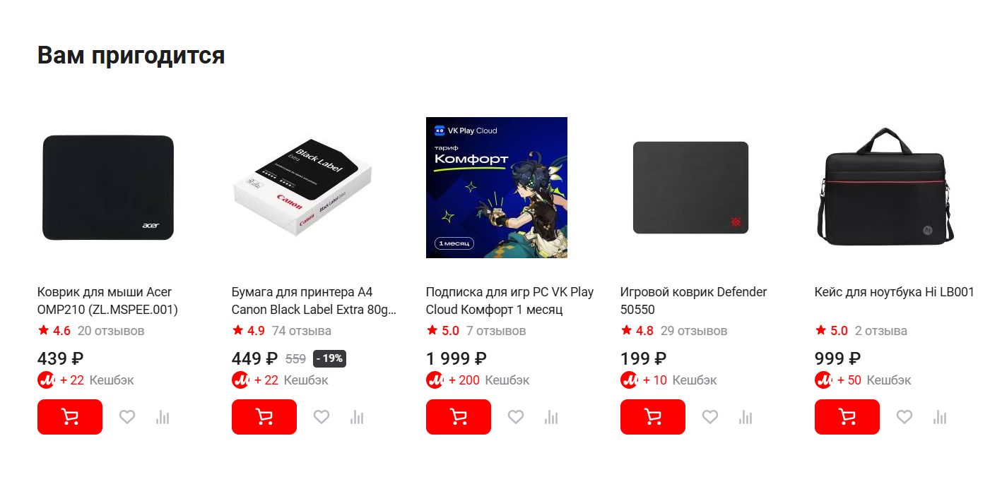 При покупке ноутбука М-Видео предлагает сопутствующие товары