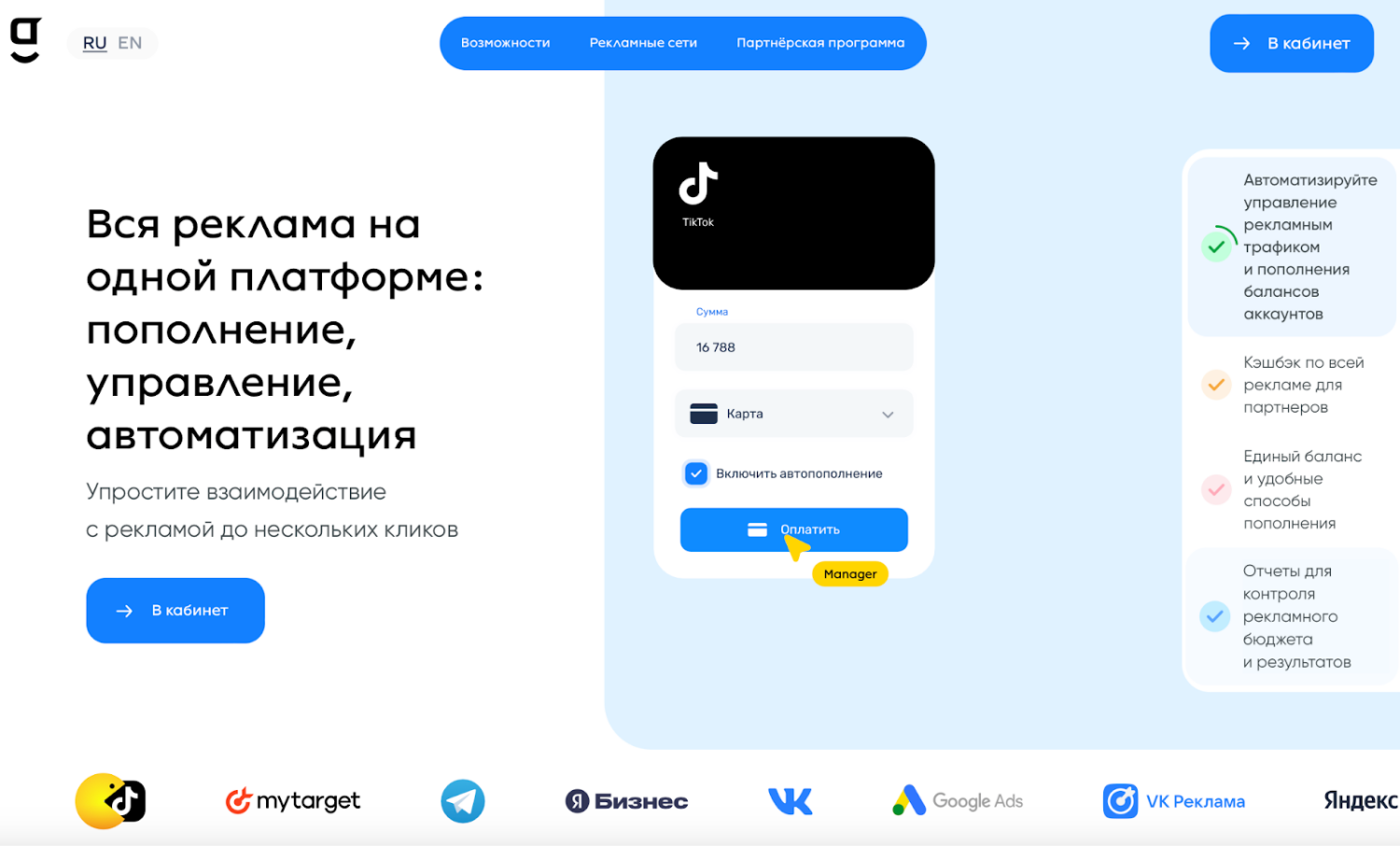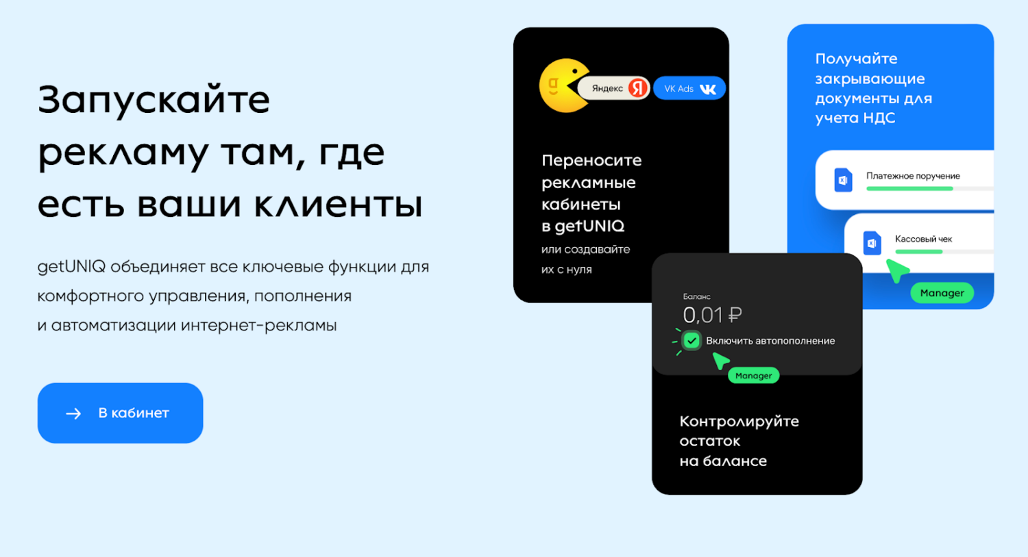 После регистрации на сайте getUNIQ клиент может управлять рекламными кампаниями и автоматизировать их, а также изучать статистику и на ее основе корректировать продвижение.