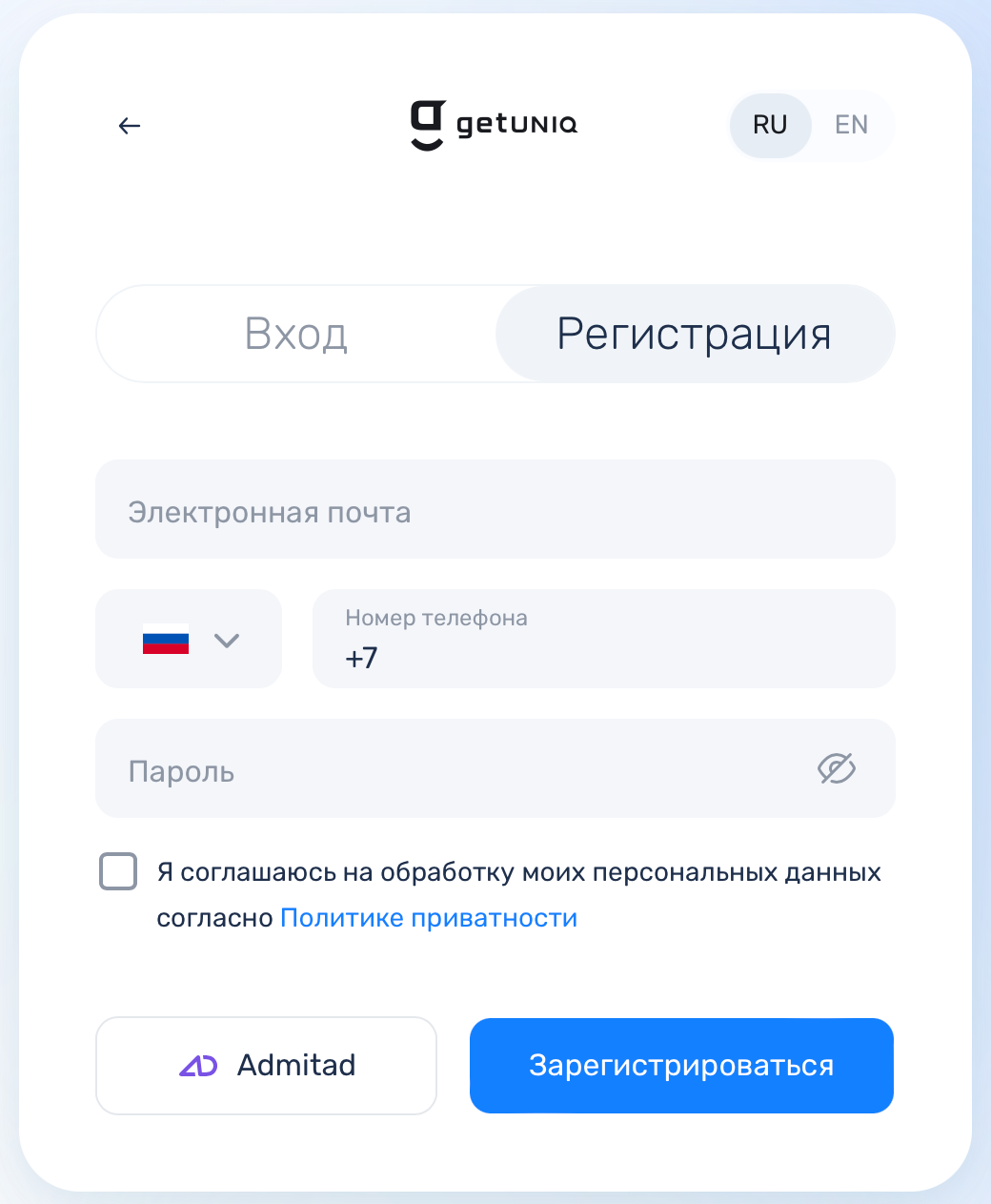 На сайте getUNIQ лид-форма находится в шапке и на главном экране
