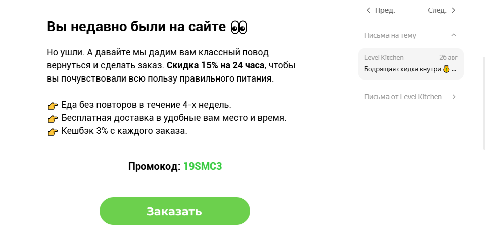 Так работает ретаргетинг: вы зашли на сайт, но ушли без заказа — в почте уже ждет письмо с напоминанием и спецпредложением