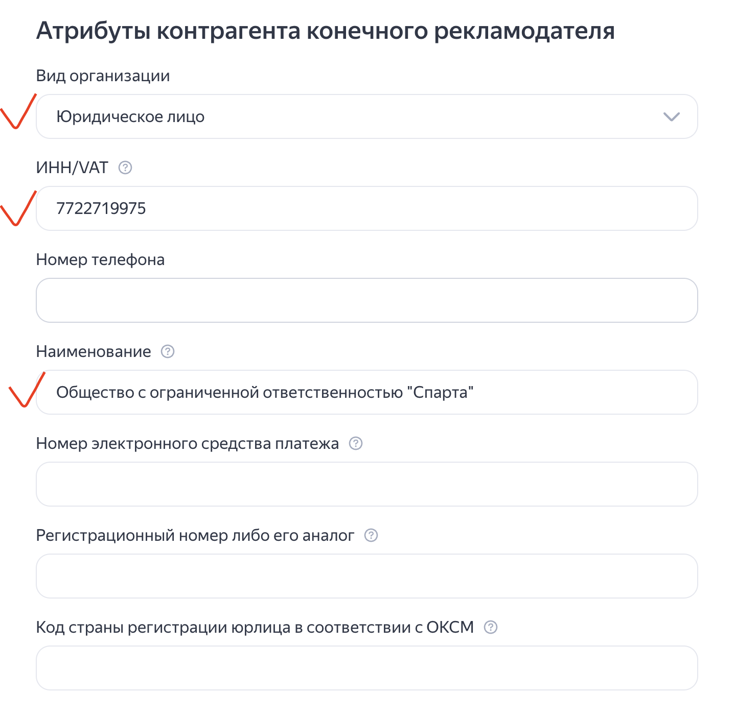 Если вы оплачиваете рекламу в getUNIQ сами, но при этом ваша реклама ведет на сайт другого рекламодателя, то вам необходимо заполнить полную форму для маркировки.