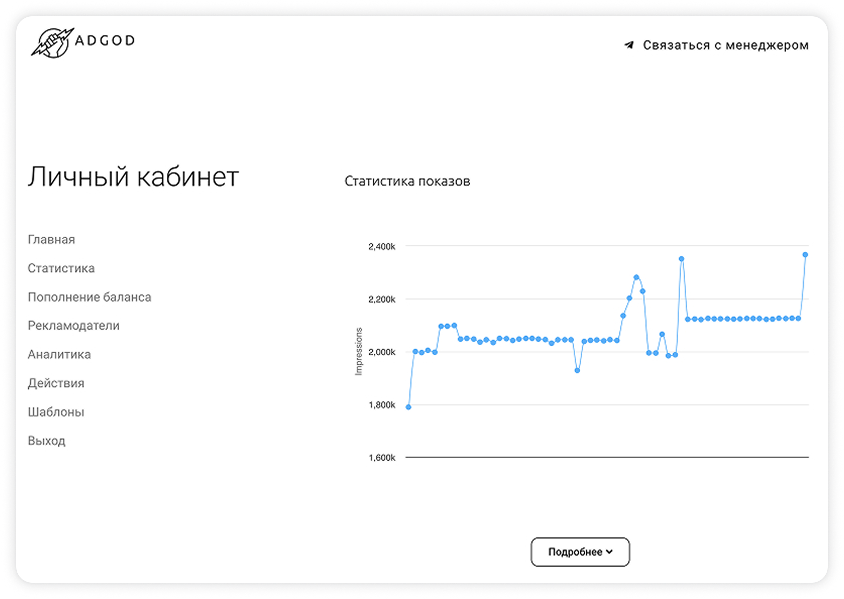 Для начала сотрудничества с рекламной сетью Adgod необходимо внести минимальный бюджет: